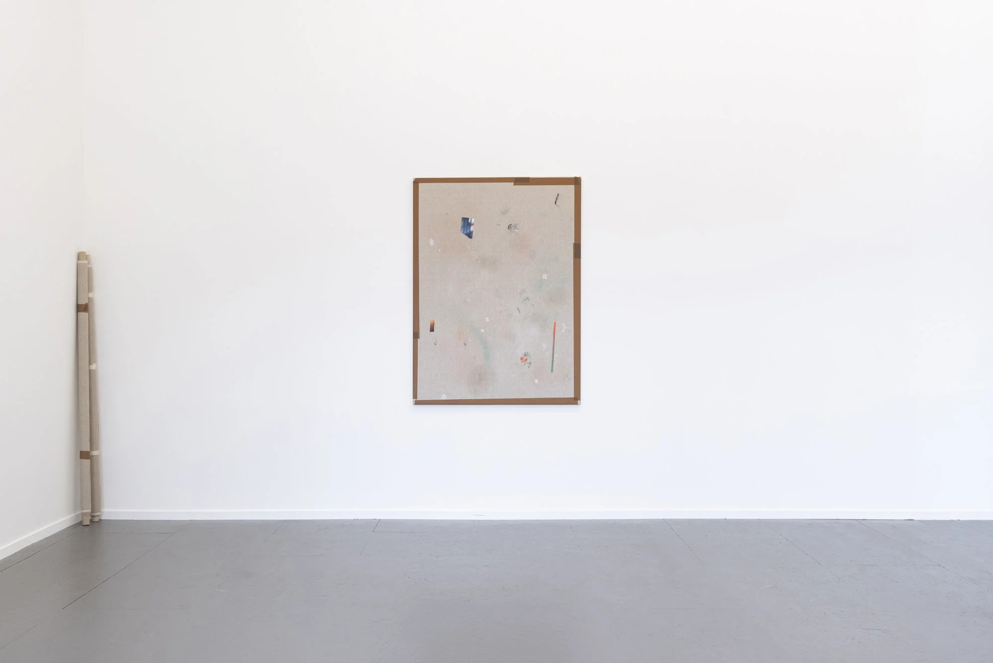 He has to smile when he reflects that all the painter’s works could be described in this way, as sp(l)itting images, variations on a similar theme, based on uncanny likeness. But when he looks again, there is something that causes his smile to subside, something he has often experienced in the painter’s studio, alone or among other viewers. The discovery of a trompe l’oeil has the propensity to elicit a smile. It is as if you feel caught out in your gullibility, a somewhat embarrassing, personal deficiency in your capacity to see things objectively. Laughing serves to neutralize the feeling. It is the moment that one’s understanding resolves: an insight is shared, a wink received. But then comes the moment that the laughter intensifies, as if everything is part of the same joke. That roll in the corner with tape on it: is that a finished painting? That canvas on the wall with the clippings beside it: real or painted? And that intercom by the door, haha: that’s real, no doubt. But the door frame itself? Can we actually still leave? In this way it suddenly begins to haunt you. Not because you take the joke seriously, but because everything in the space becomes the subject of an endless irony, including the space itself. Because the imaginative game being played here seems to infringe on all of reality. And because, in light of that irony, the way the painter continues this game from work to work – even exhibiting his studio as a trompe l’oeil – slowly starts to resemble an existential quest: painting in search of something that is ultimately real. Or, no, it’s exactly the opposite: painting in search of the ultimate illusion, something the painter can continue to believe in.